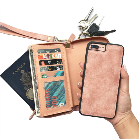 The Ultimate Wristlet Phone Case is the perfect travel accessory for the girl who's always on the go! Matching Dusty Pink Magnetic Phone Case is included for FREE!!